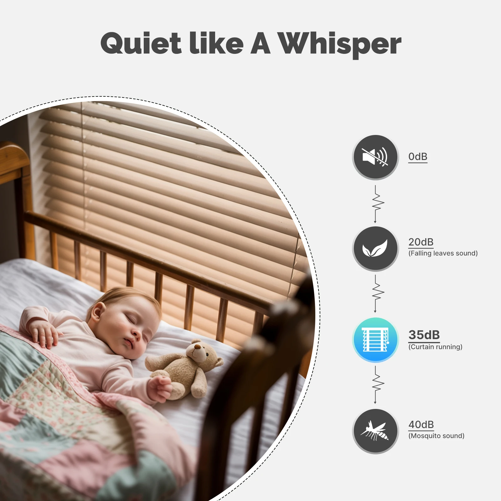 Curtain operation as low as 35 dB — undisturbed, restful sleep.